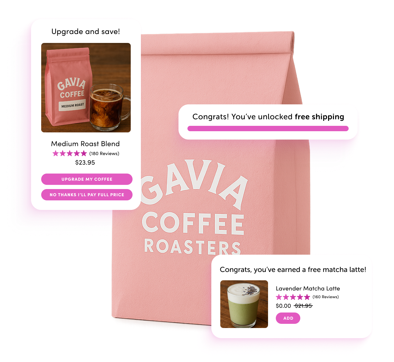 From recommending a new flavor to offering a coffee subscription, Rebuy helps Food & Beverage Shopify brands create experiences as irresistible as their products. With smart product recommendations, subscription upsells, and post-purchase offers, you’ll turn single orders into loyal customers and boost revenue at every step.