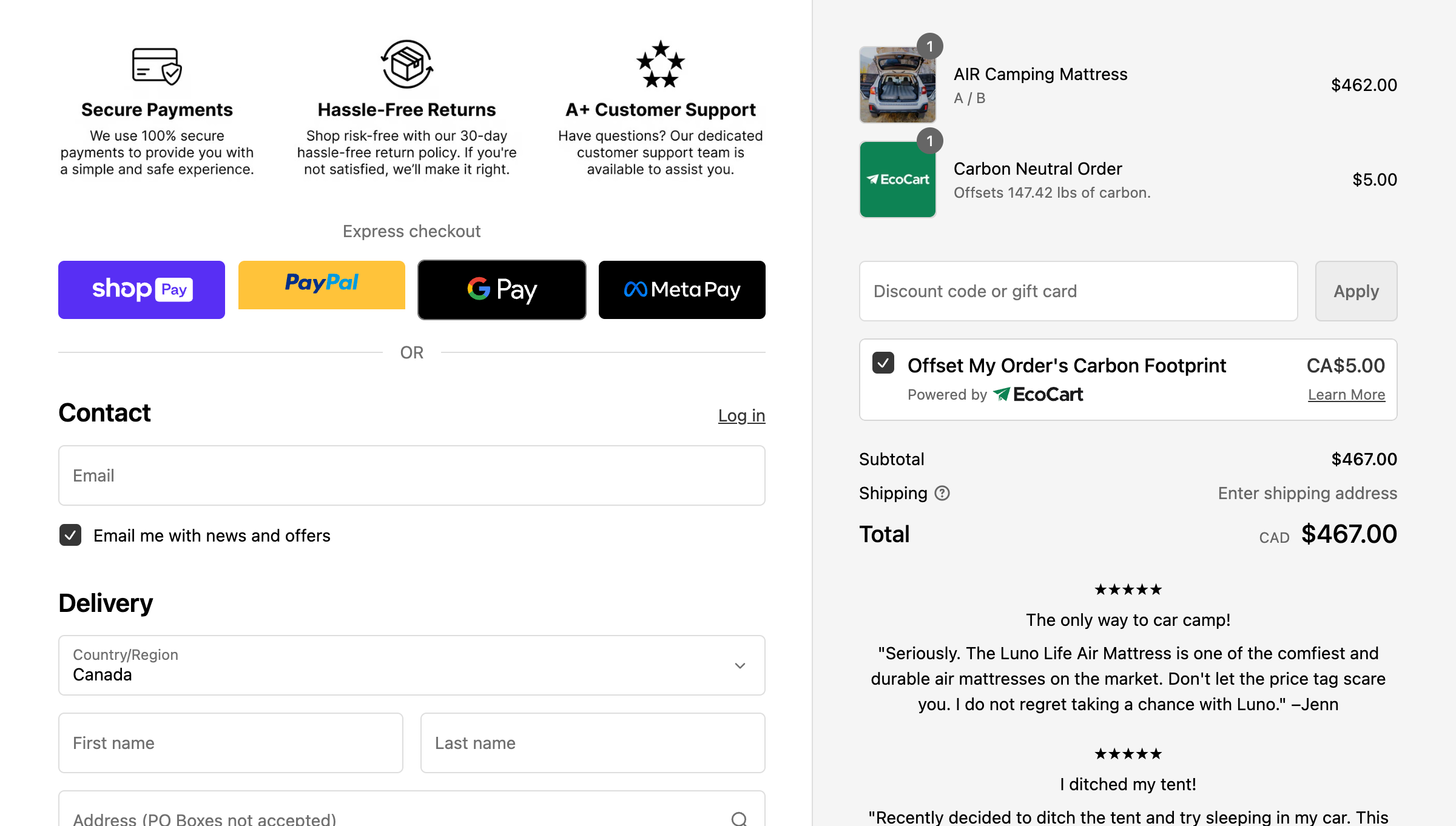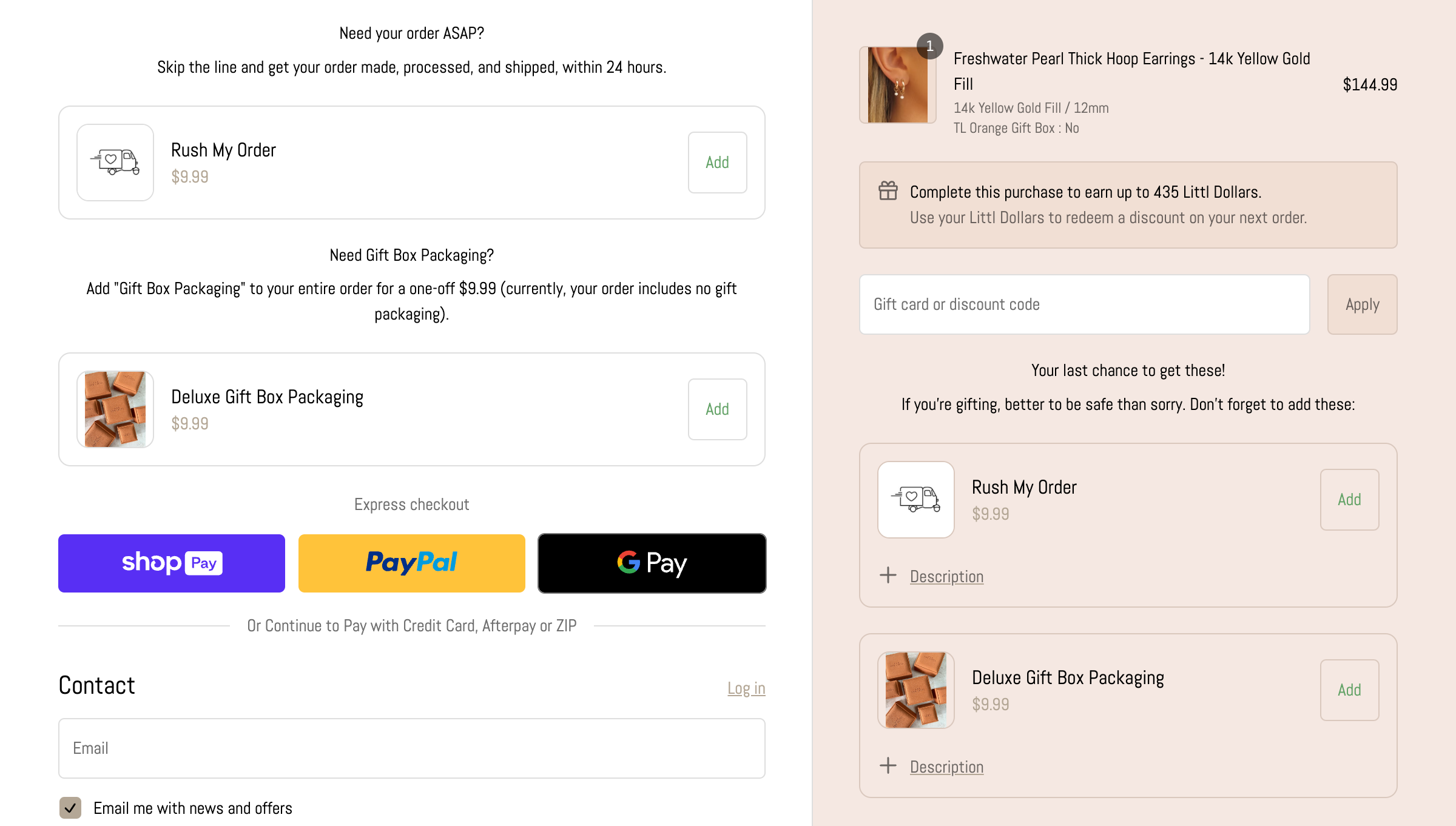 - Free shipping & tiered rewards progress bar